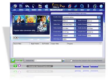 Extra Video Converter é um poderoso programa para converter seus arquivos de vídeos entre todos os formatos de vídeos populares. Com este software, você pode converter vídeos de AVI, DivX, XviD, MPEG, MPG, WMV, ASF, RM, RMVB, DAT, MOV, SWF, FLV, VOB, e NSV a AVI, MPEG, Apple iPod, Sony PSP, Mobile 3gp, Microsoft Zune, WMV, YouTube, FLV, MOV, MP3, WMV, OGG, ou WAV. É simples e fácil de usar.- Categoria: Conversão de Vídeo